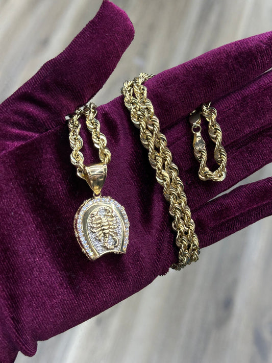 14K Hollow Rope Chain with 14k CZ Scorpion Pendant