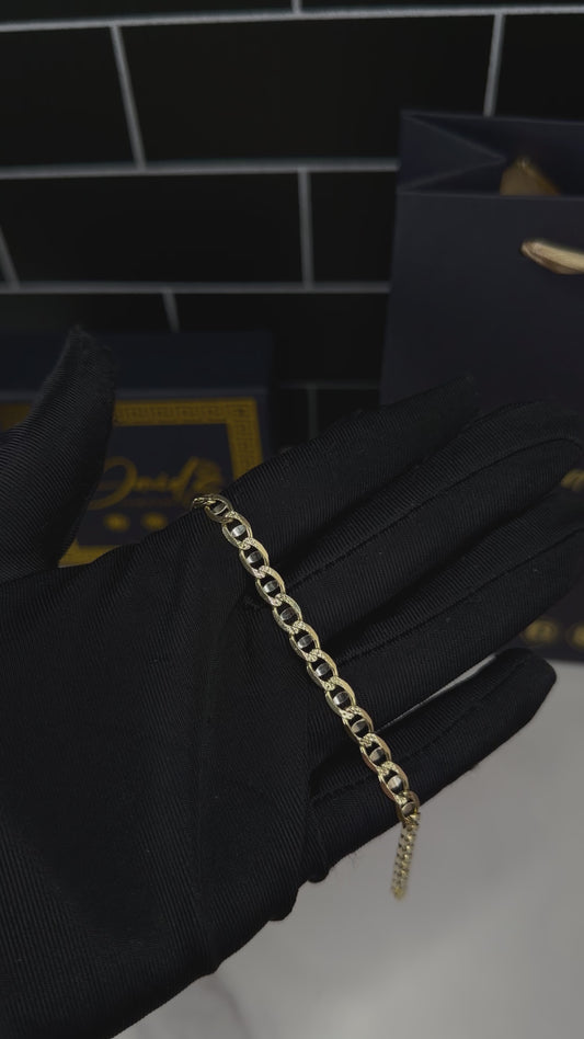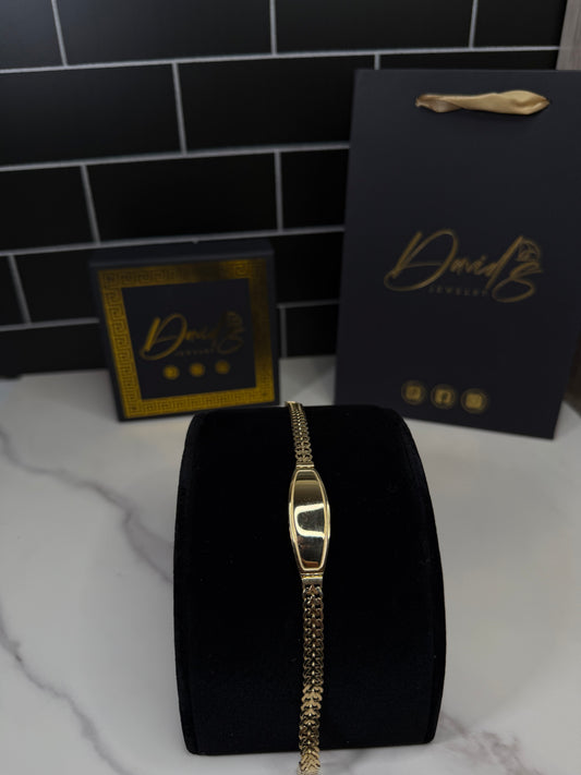 14K Tri-Color Figaro Cross ID Kid Bracelet
