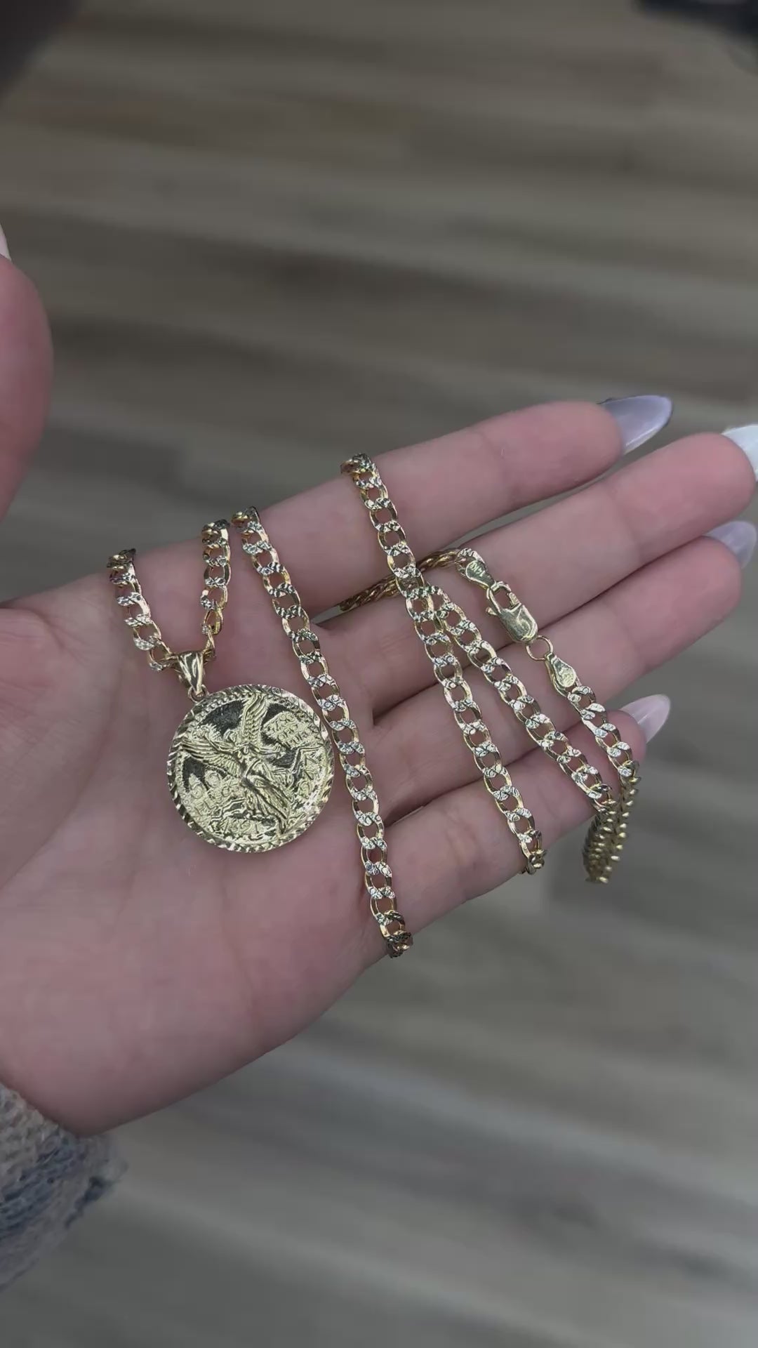 14k 25” Diamond Cut Cuban Link Chain paired with 14k 1.5 inch Centenario Pendant