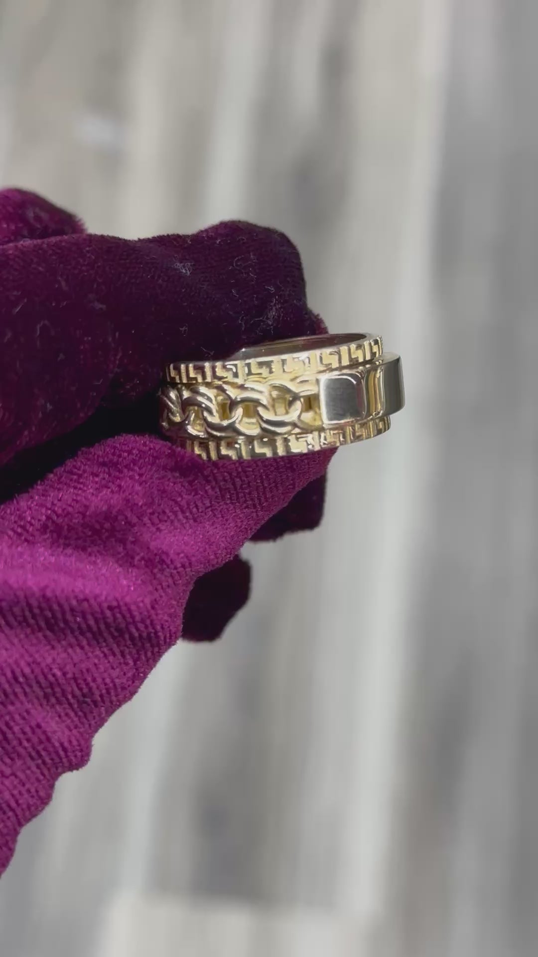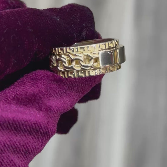 14K Solid Greek Key Chinolink Spinning Men Ring