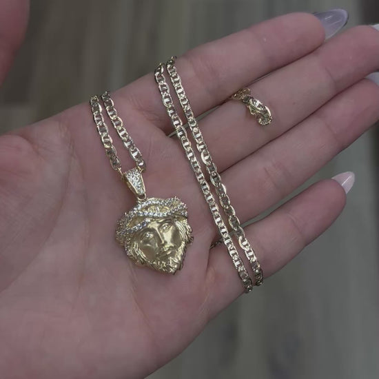 14K 20” Diamond-Cut Mariner Link Chain paired with a 14K CZ 3D Jesus Pendant