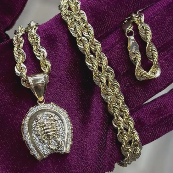 14K Hollow Rope Chain with 14k CZ Scorpion Pendant